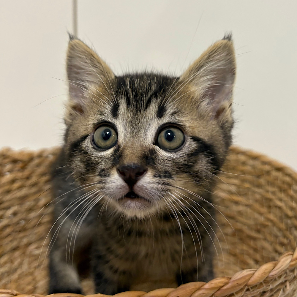 丸っこくきょとんとした表情が可愛いカルーアくん。遊びも人も大好き。目が合った瞬間にゴロゴロが始まる甘えん坊です。かまってほしくて、ぐいぐいアピールします。猫も人も大好きなので、一人っ子でも先住さんがいても大丈夫です。