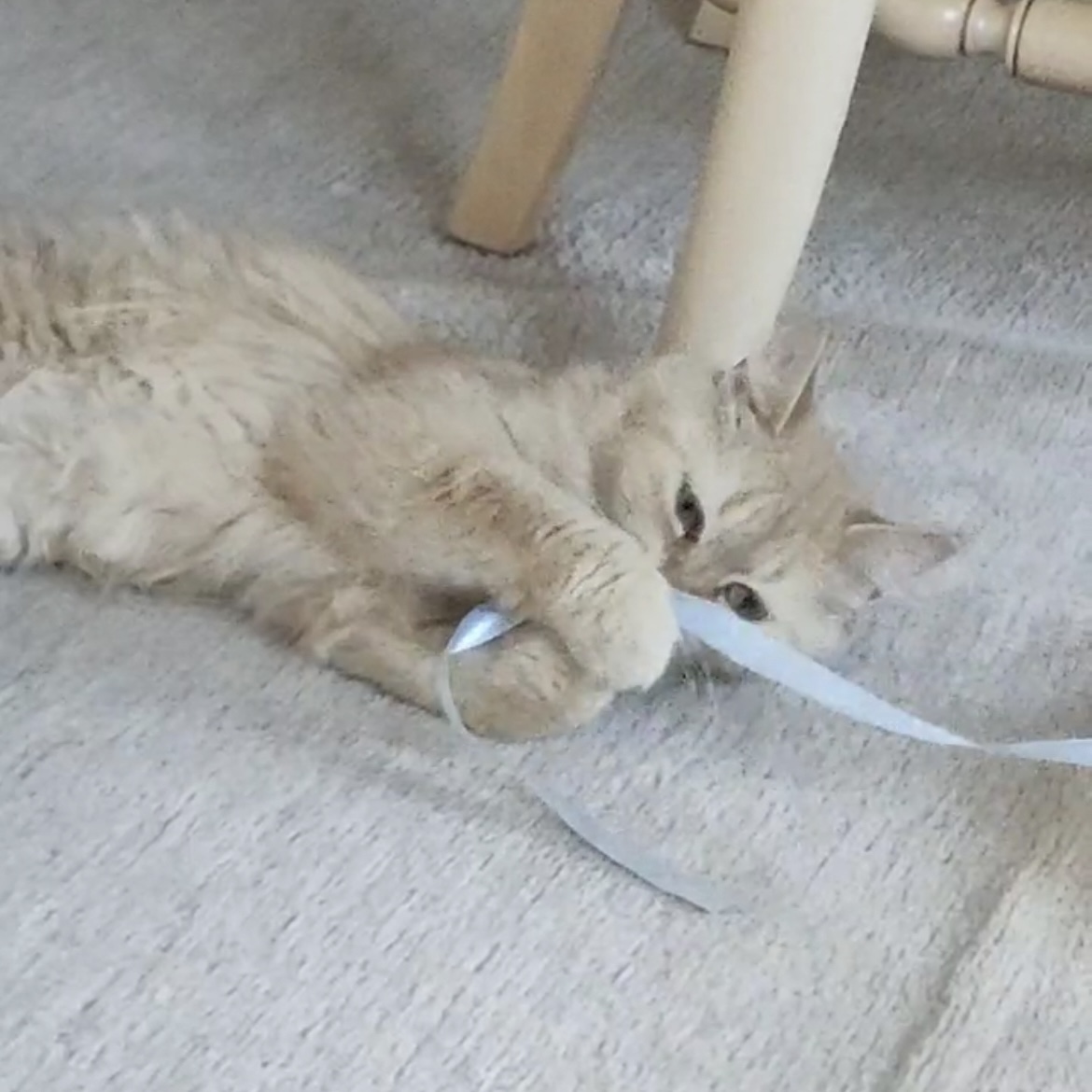 ワラビーちゃんは脚長マンチカンです。保護当時は無表情て怯えていましたが、あっという間にお顔も性格も可愛い猫さんになりました。起きている時には直ぐに遊びのスイッチが入り、長々と活発に遊んでいます。ゴロンゴロンと可愛い表情を見せてくれるので中々の猫好きキラーです♡