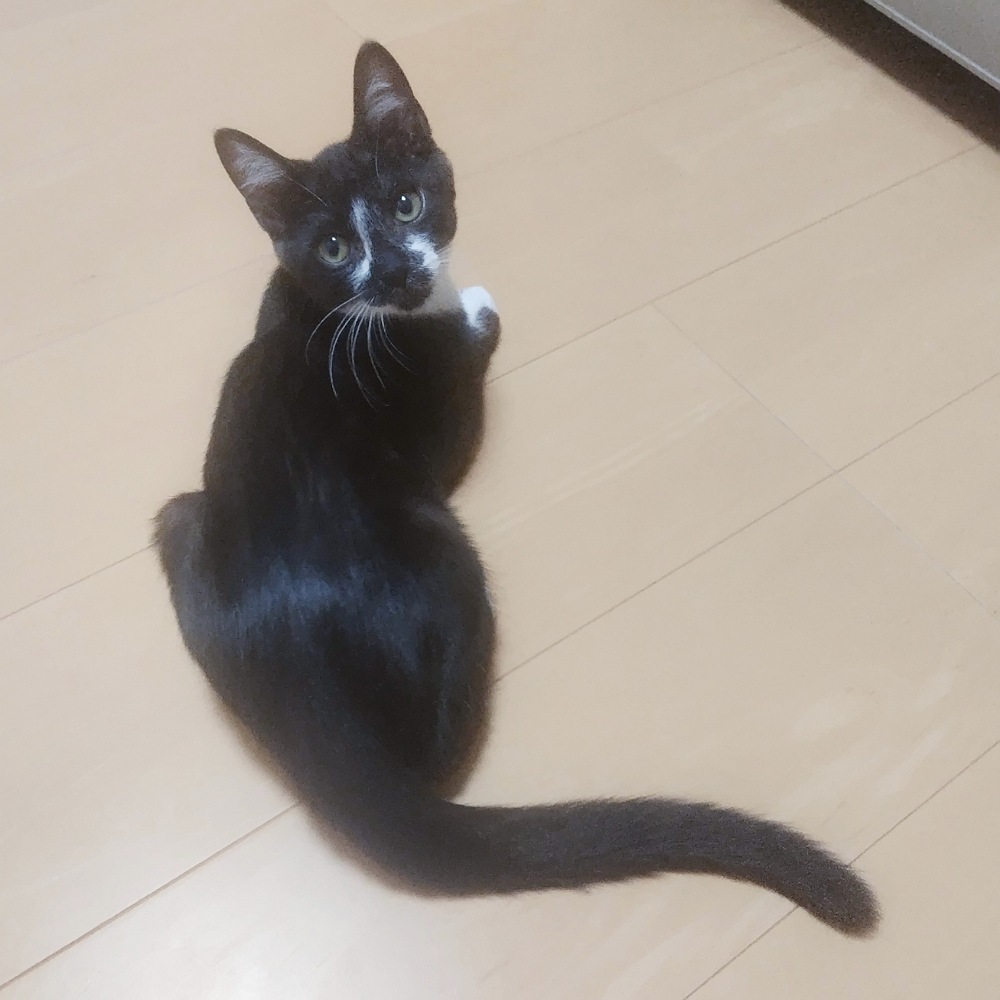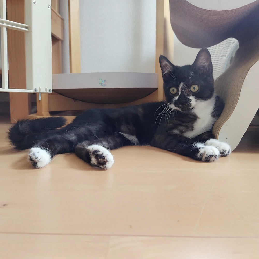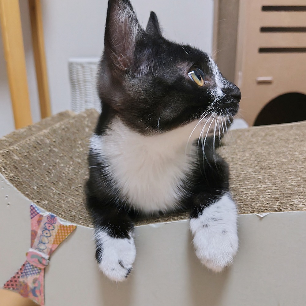 - 推定2025年5月5日生まれ、黒白猫の仮名・時雨(しぐれ)くんです。