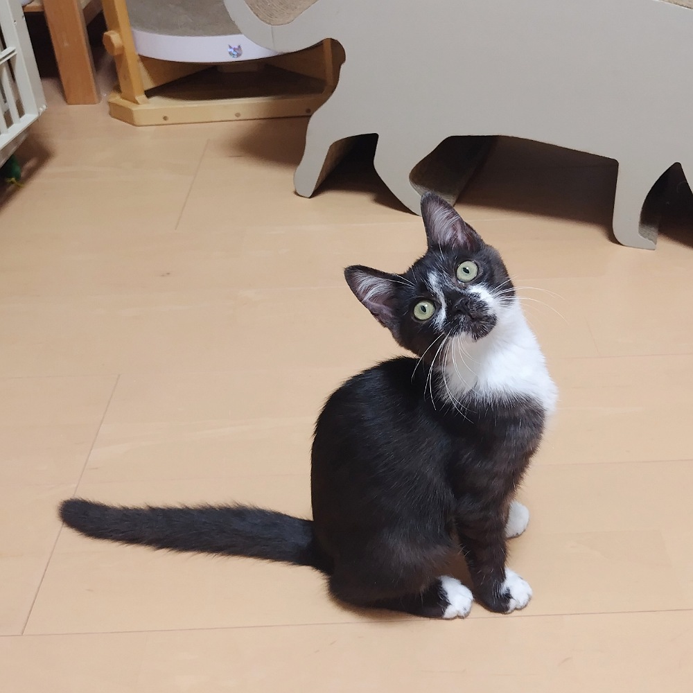 我が家に移動して1ヶ月余り、キャットタワーを上手に使いこなし、おもちゃで懸命に遊び、鳴いて要求することを覚えました。