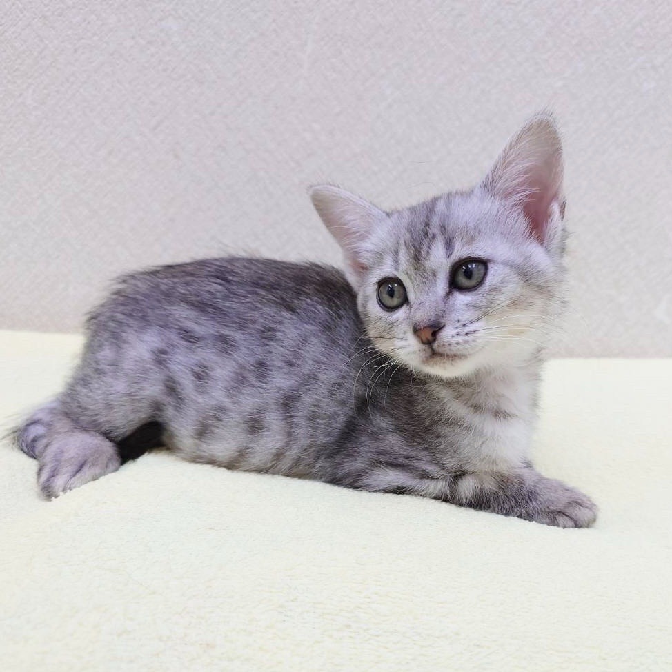 人間がミルクから育てたので人馴れは抜群!綺麗なサバトラのさとみちゃん。どちらかというとおっとり系の女の子です。しかし、嫌なことは嫌とはっきり自己主張もします。注射などは一番大げさに「やめて~」と鳴きます。意外と食欲旺盛です(笑)猫も大好きなようでみんなとくっついて毛繕いしあいながら寝ています。