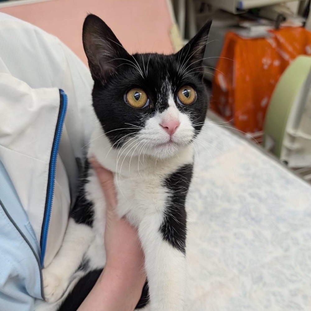 保護場所の関係で動物病院で預かってもらっていた為、お写真も病院で撮ってもらったものです。保護して日も浅いですし、場所馴れしているところでの撮影ではないため、ちょっと緊張した感じのお顔の写真が多めです。