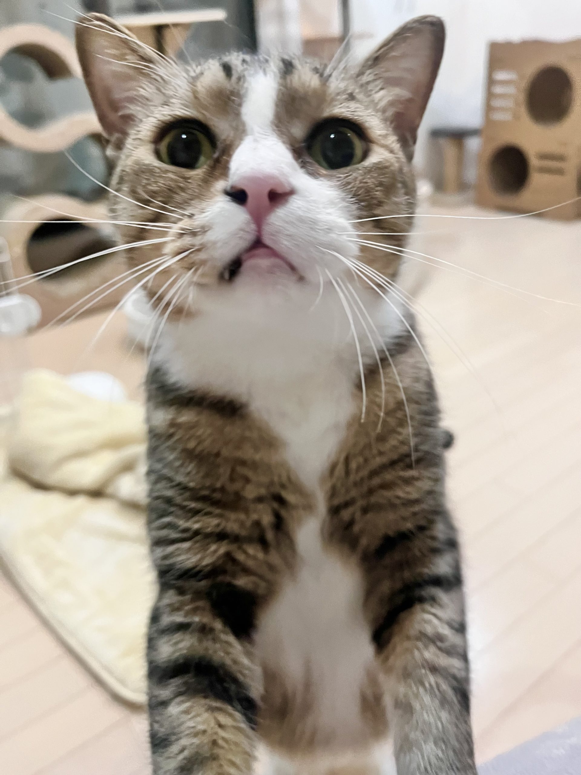 - 6kg越えのおおきな体ですが、中身は超小心者なでかちびくん。