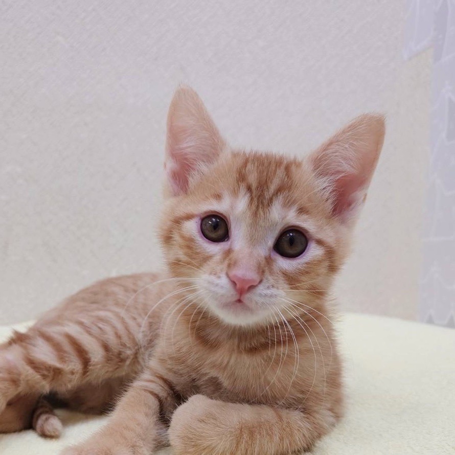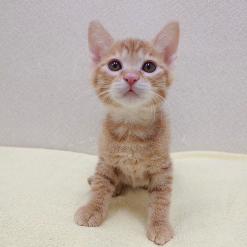 人間がミルクから育てたので人馴れは抜群!正統派の綺麗な茶トラ男子。食欲旺盛で兄妹で一番体が大きいねりくん。性格は穏やかな優しいみんなのリーダーです。甘えん坊さんの面もあり、兄妹のお腹を吸って眠ったりします。活発に動いていますが意外とどんくさいかも?(笑)よくジャンプに失敗してずっこけている姿を見かけます。抱っこするとゴロゴロと喉を鳴らしてくれます。