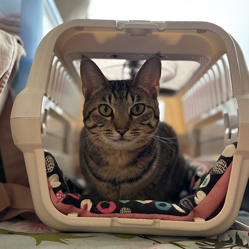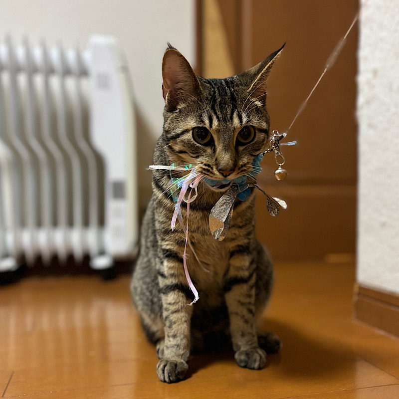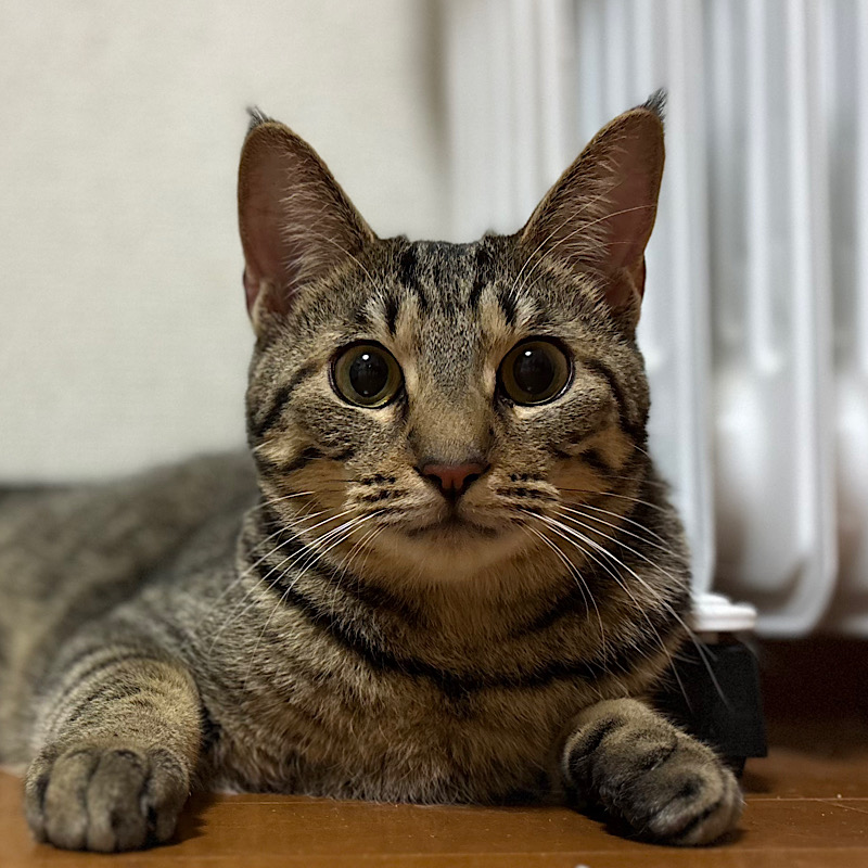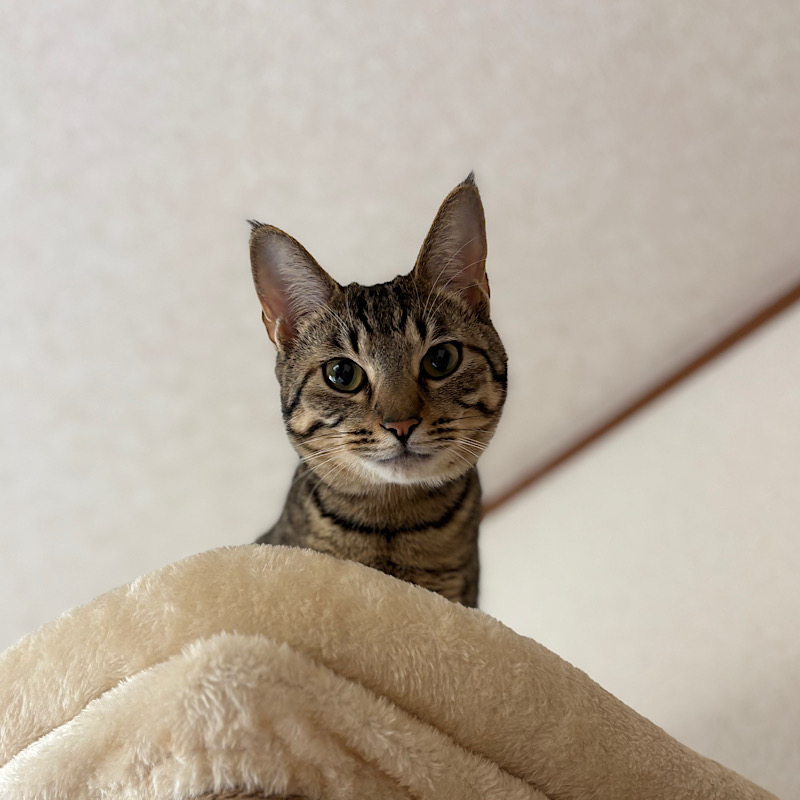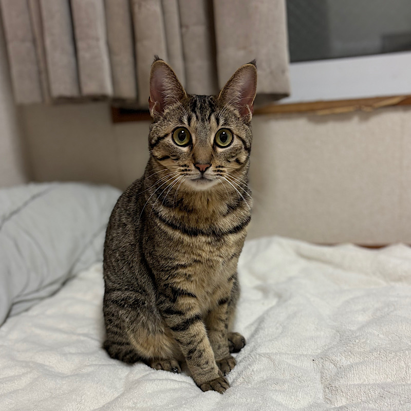- ドーナツ尻尾が可愛い薄茶のキジトラ男子、ぼんくん。