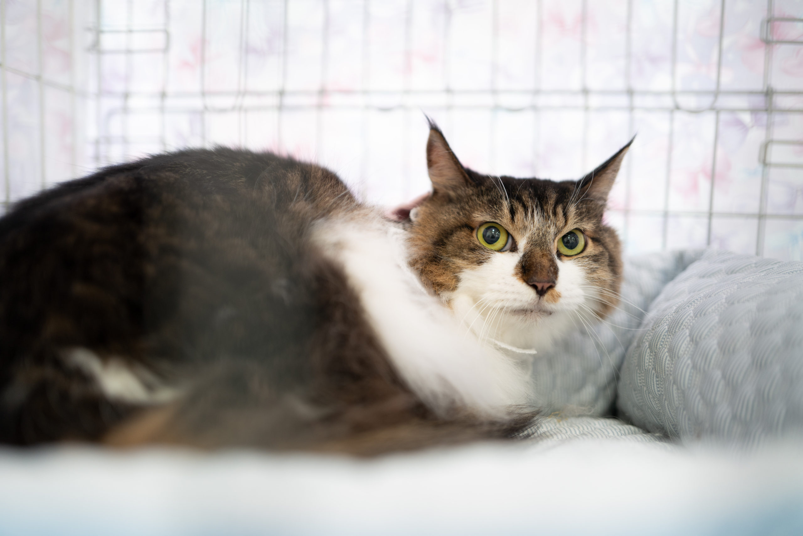 ビビりで安心できる場所が必要な猫さんなので、ケージと脱走対策は必須になりますが、おうちそれぞれの特徴に合わせたアドバイスをさせていただいております。