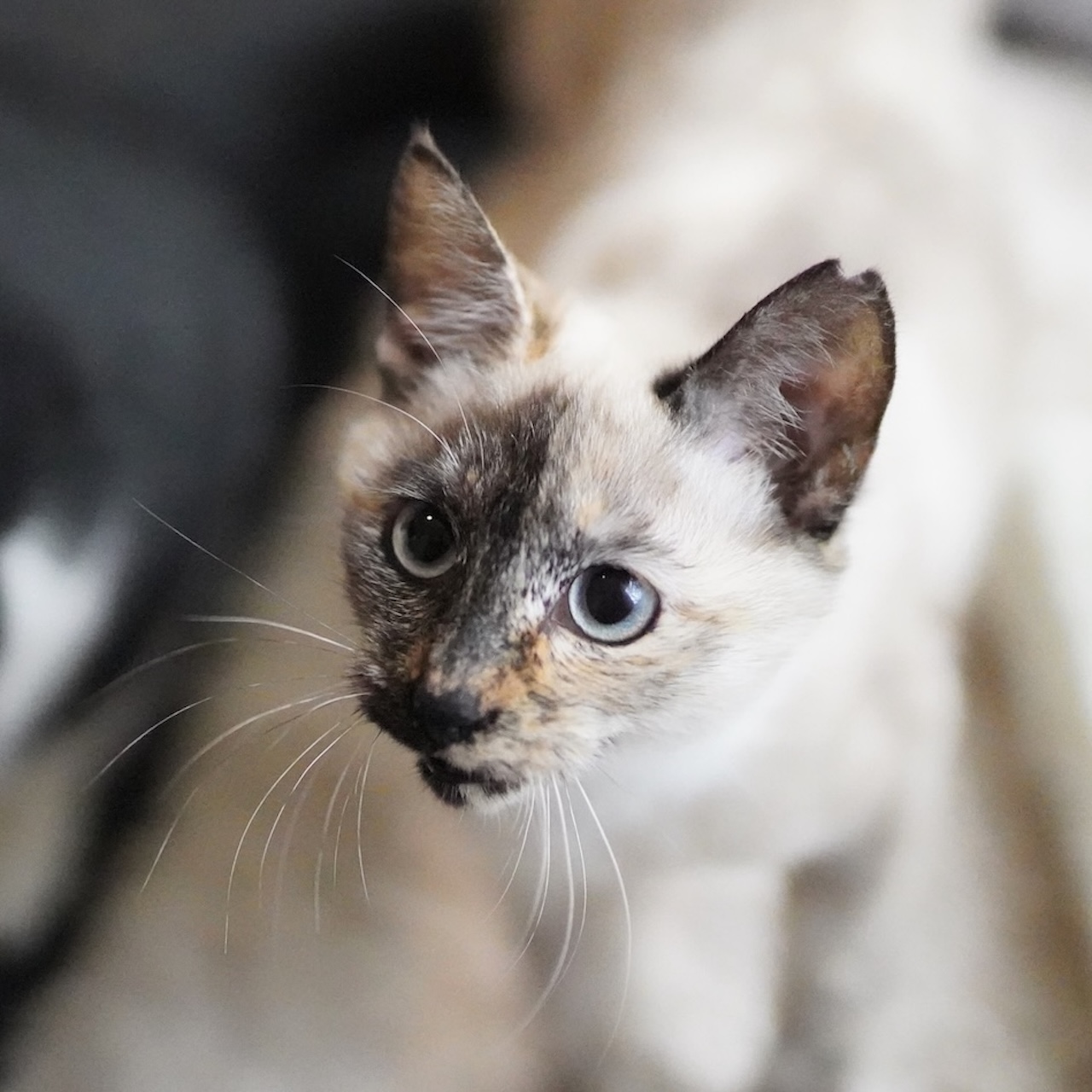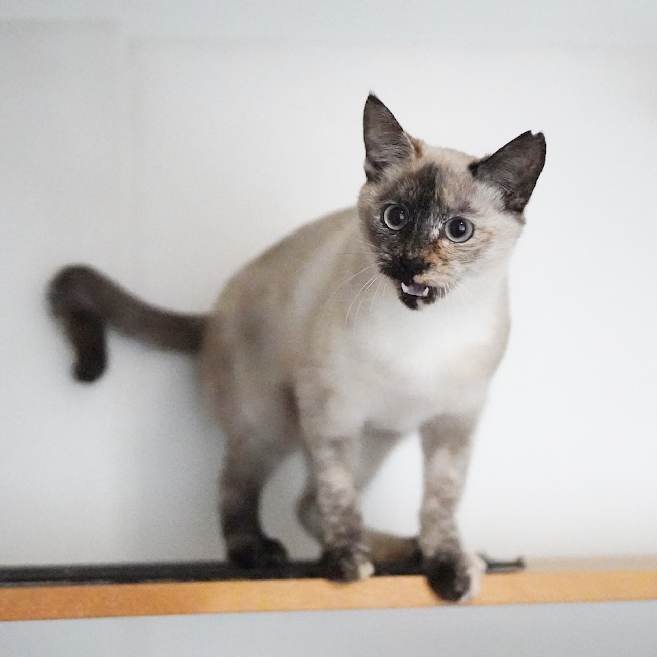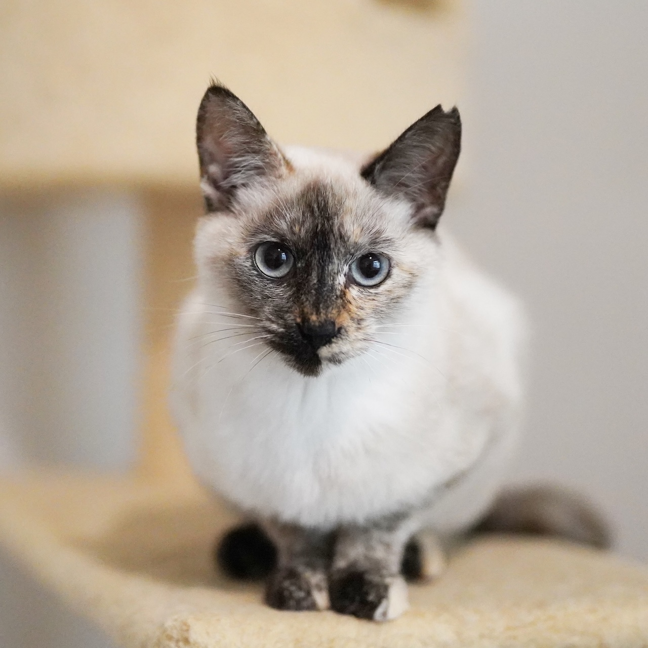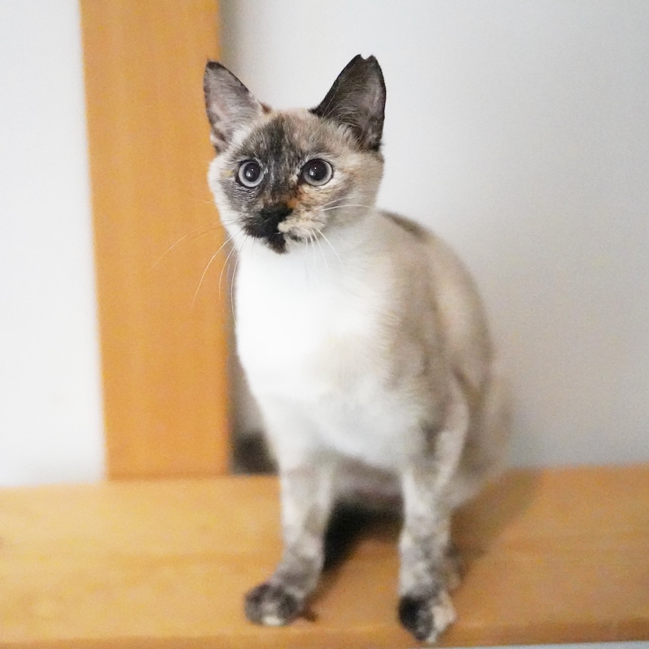 遊ぶのも大好きな、綺麗なブルーアイのシャムミックスの女の子です。