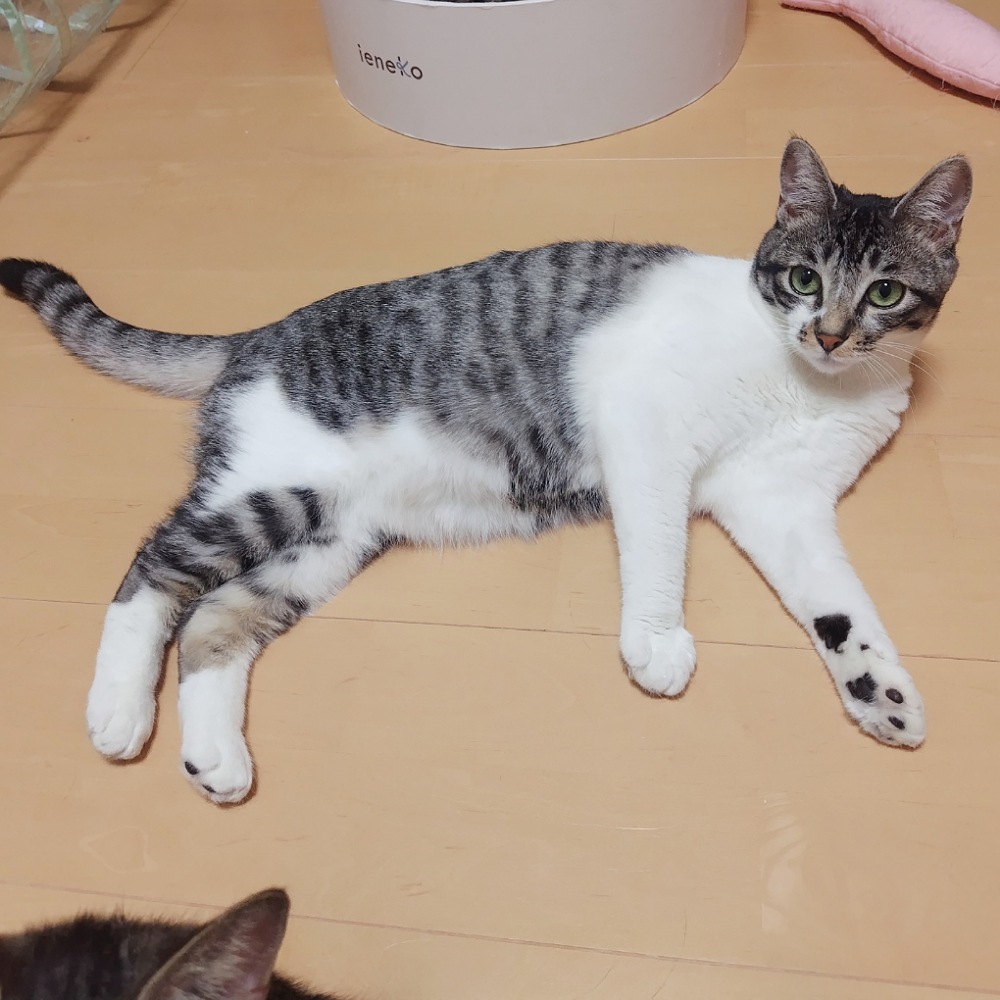 - 推定2025年5月5日生まれ、サバ白の仮名・初夏(しょか)ちゃんです。