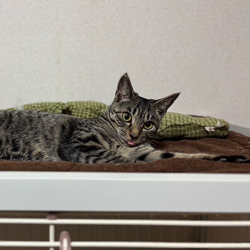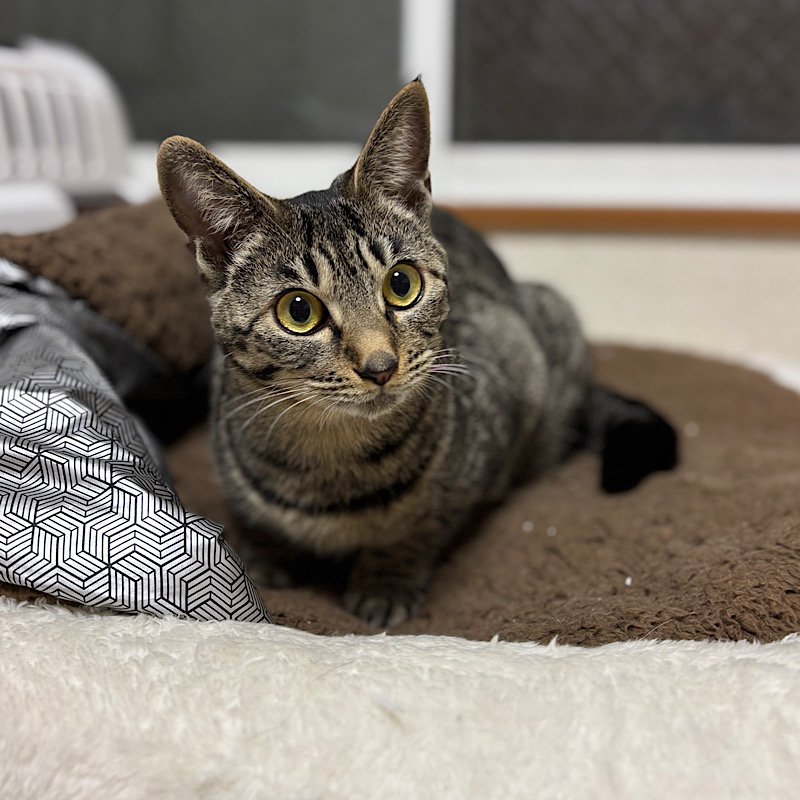 色合いが濃い目のキジトラ女子、苺ちゃん。